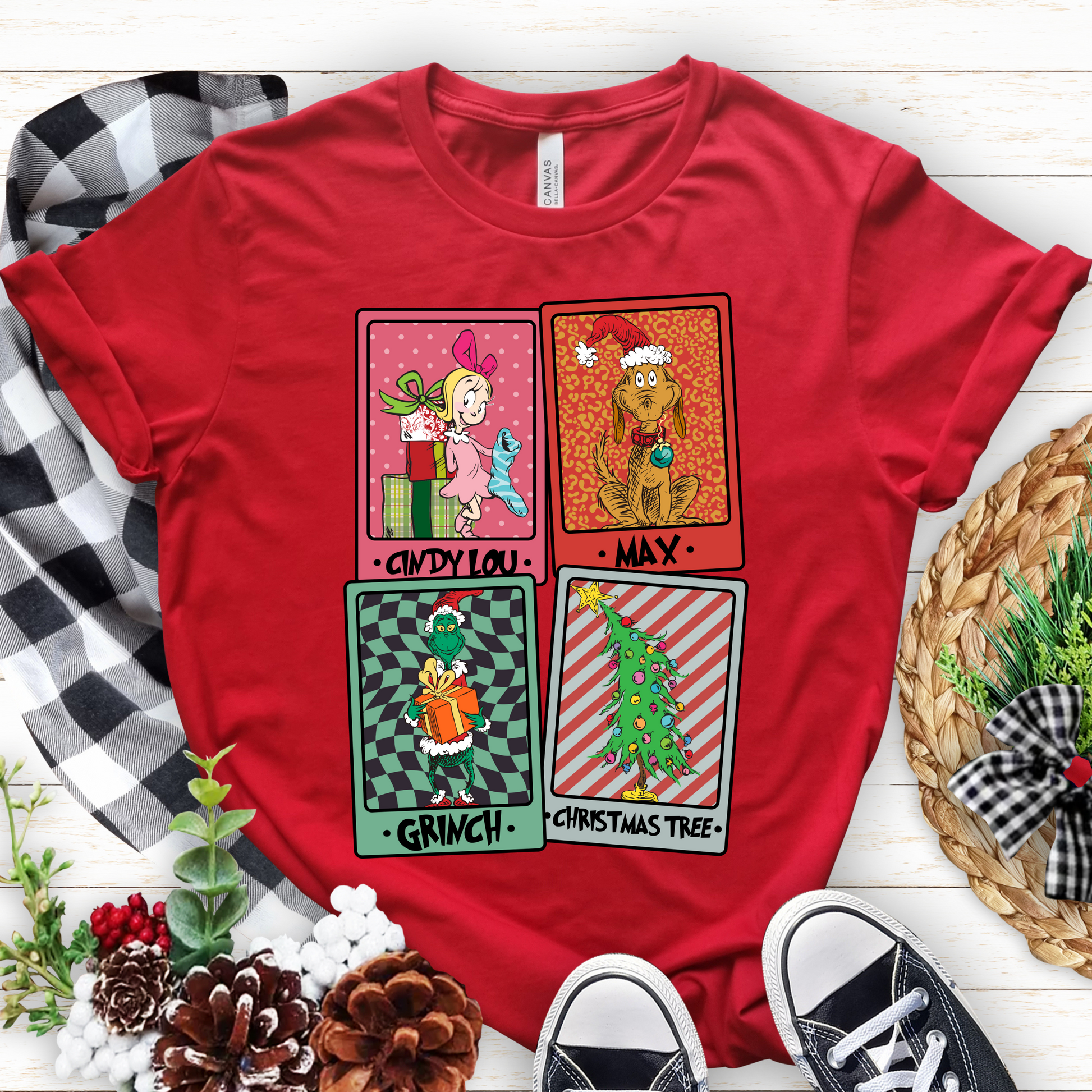 This collection features your beloved characters from Dr. Seuss's "How the Grinch Stole Christmas" on a variety of cozy apparel options. Brighten up your winter wardrobe with a touch of whimsy and nostalgia. Available in t-shirts, sweatshirts, and hoodies.