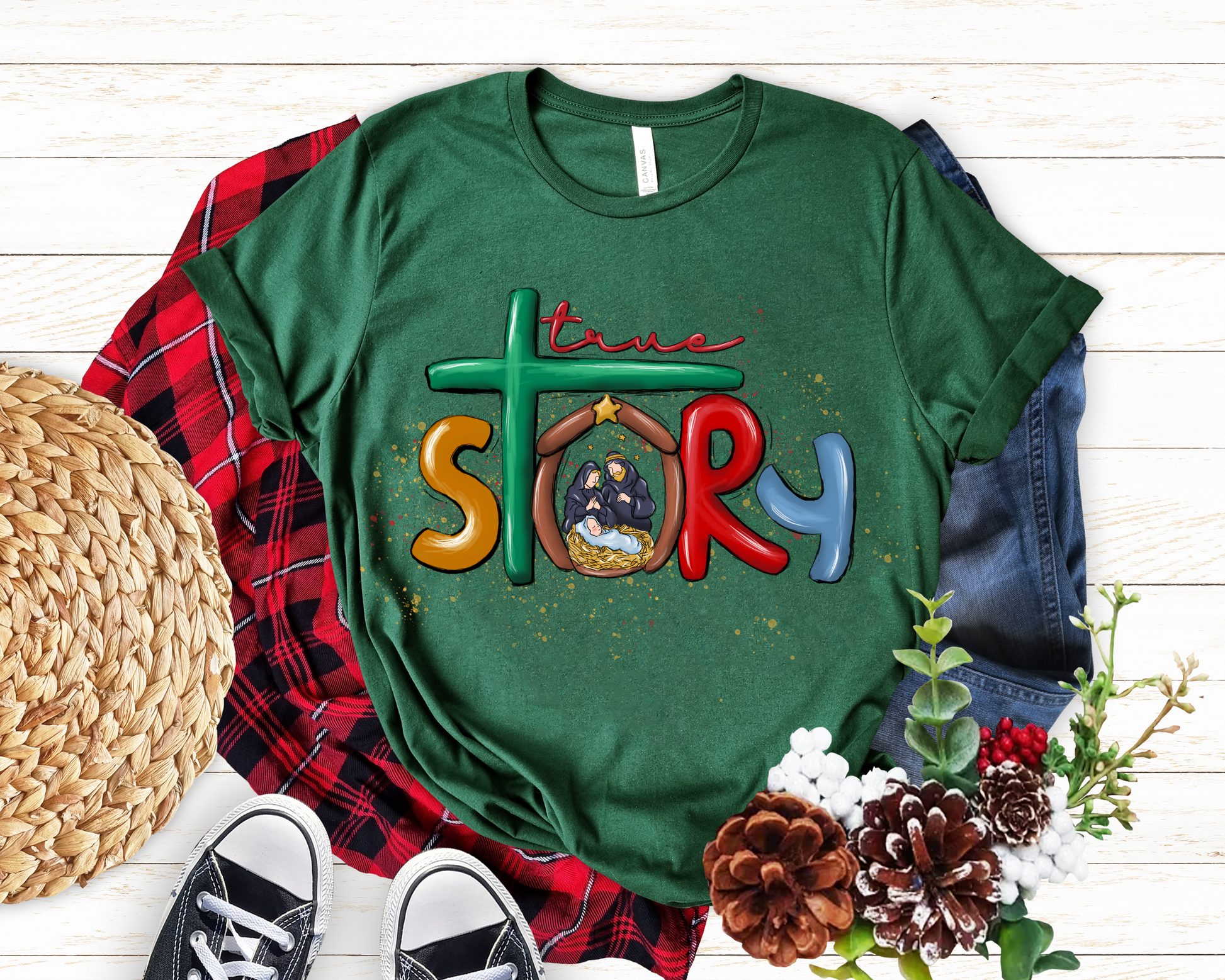 Celebrate the reason for the season with "True Story" t shirts, sweaters, and hoodies. Display the nativity and share the greatest story ever told with this faith-based design. Show your love for Jesus and spread the joy of Christmas.
